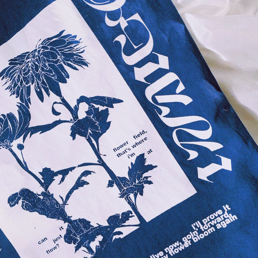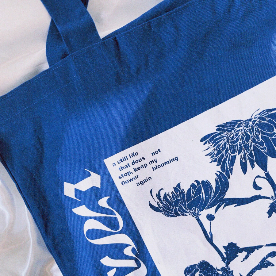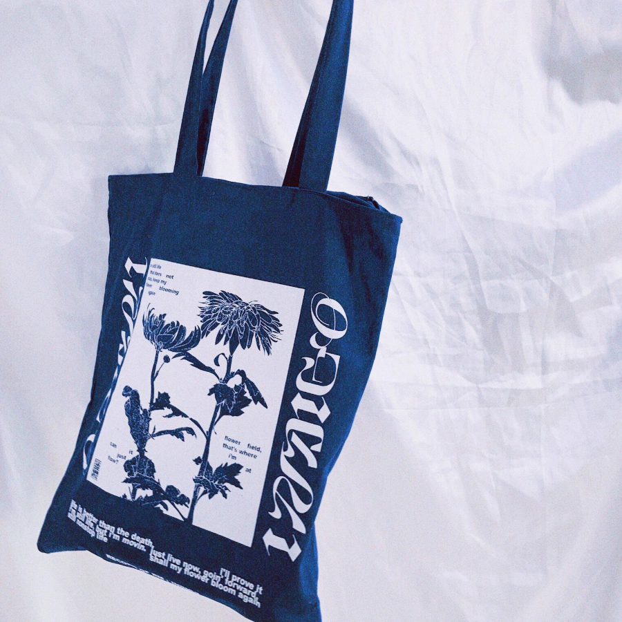 Nossa ecobag INDIGO foi inspiração do álbum de mesmo nome do RM, com frases de músicas em um tom azul que remete à essência do álbum.