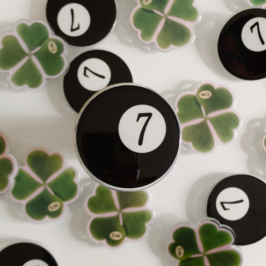 Pop socket 7 ball, inspirado na bola de bilhar preta, mas com o número 7, remetendo a quantidade de membros do BTS .
